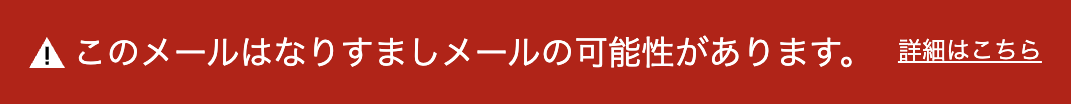 警告が表示されたメールは、なりすましメールの可能性が高く、フィッシング詐欺などの危険を伴う可能性があるため、閲覧の際には十分にご注意ください。
