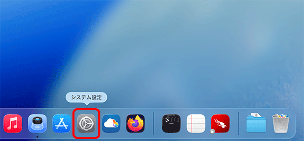 ※ またはメニューバーの[アップルメニュー]-[システム設定]をクリックします。